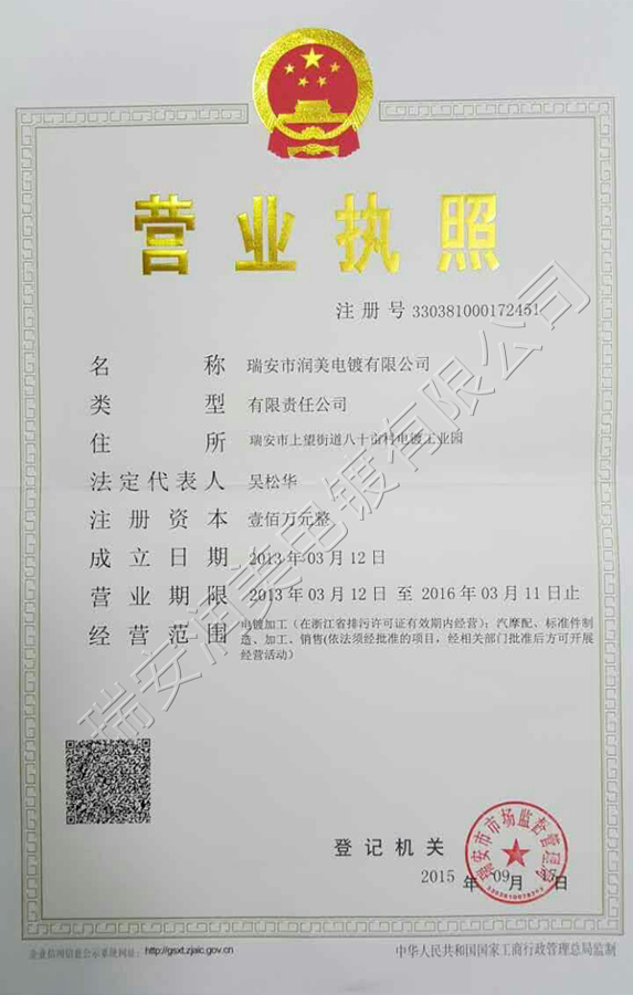 潤美電鍍營業(yè)執(zhí)照